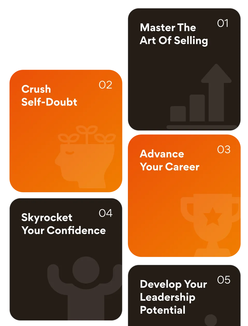 Not only will you master the art of selling… but you’ll also unlock and develop your leadership potential, reprogram your mind to crush self-doubt and limiting beliefs, build habits to advance your career, and skyrocket your confidence to levels you never thought possible. You’ll have a skillset to skip the corporate ladder and propel yourself towards a lifetime of success!